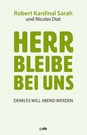 Herr bleibe bei uns - Denn es will Abend werden (Robert Sarah, Nicolas Diat) Unsere Welt befindet sich am Rande des Abgrunds: Glaubenskrise, Untergang des Abendlandes, moralischer Relativismus und entfesselter Kapitalismus. Im Bewusst¬sein der Tragweite der aktuellen Krise zeigt Kardinal Robert Sarah auf, dass es möglich ist, einer höllischen Welt ohne Hoffnung zu entrinnen. Im Gespräch mit Nicolas Diat widmet er sich den Krisen unserer heutigen Zeit und lehrt uns, dass der Mensch auf sei¬nem Lebensweg eine Erhebung der Seele erfahren muss, um besser aus dieser Welt zu scheiden, als er sie betreten hat.