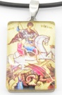 Kette mit Anänger "Heiliger Georg" schwarzes Band mit Glasanhänger und Bild des Heiligen Georgs