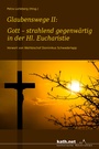 Glaubenswege II: Gott – strahlend gegenwärtig in der Hl. Eucharistie (Petra Lorleberg, Hrsg.) Eucharistie: Mitte und Kraftquelle der Kirche, Geheimnis der Nähe Gottes. Wir begegnen Jesus, der sich in unsere Hände gibt. Wahrhaft ein Geheimnis des Glaubens, doch für katholische Christen Wirklichkeit, der Dreh- und Angelpunkt ihres Lebens.